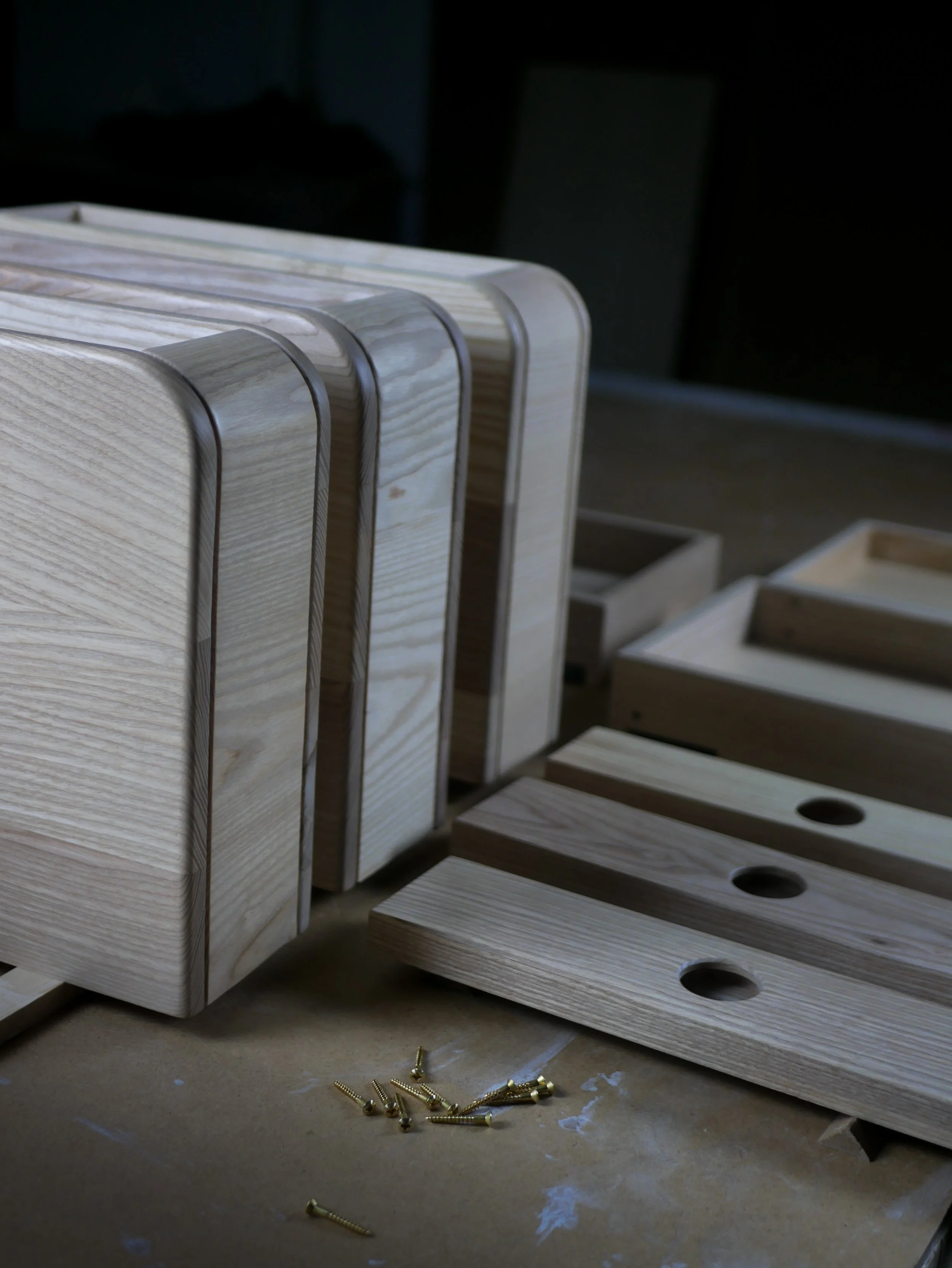 The ‘Fife’ bedside table is a slimline cabinet with a simple contemporary form. The cabinet is finished with a special hardwax oil which retains the woods natural colour and easily mounted flush with the wall via a simple cleat system.